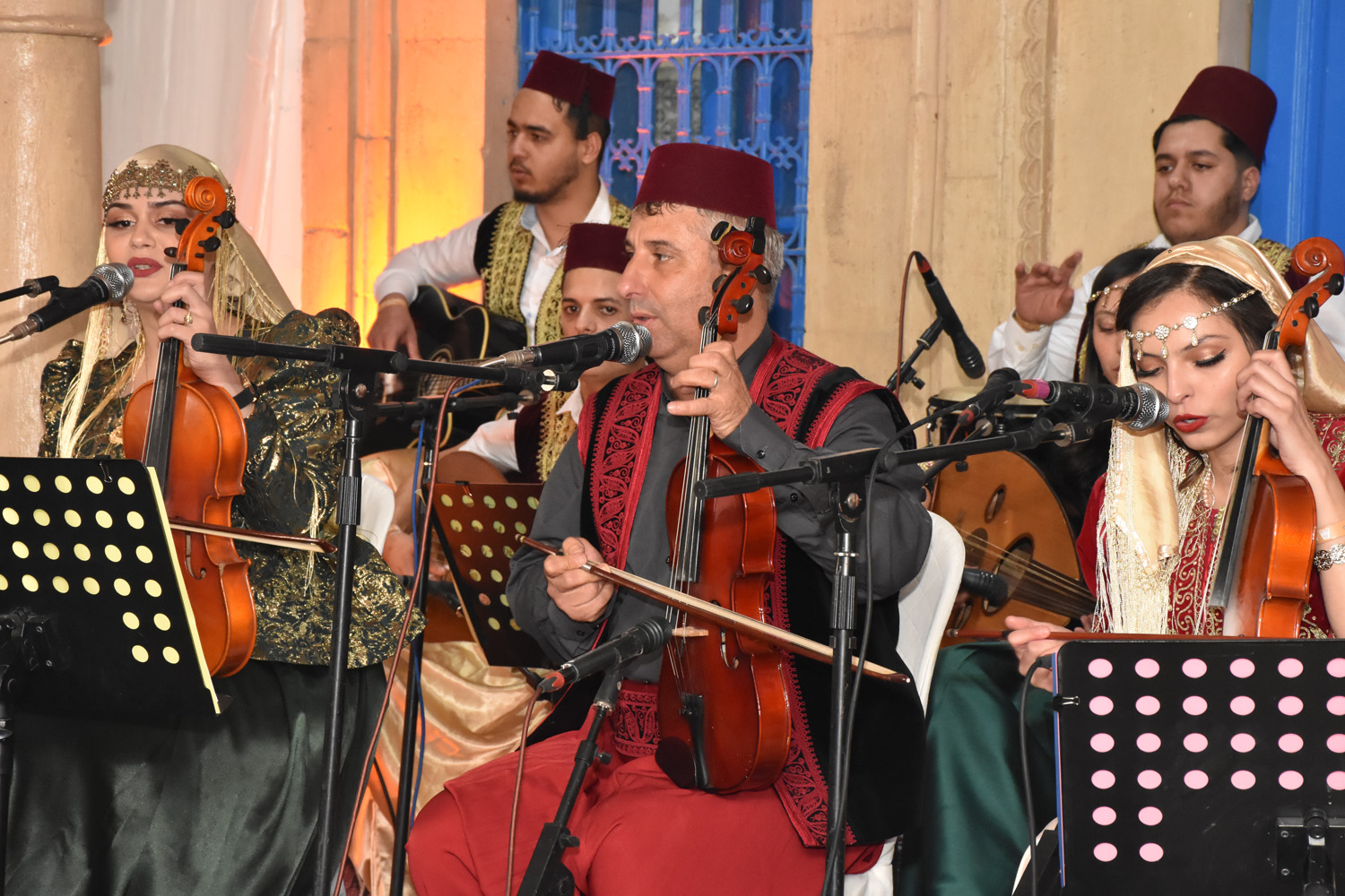 عرض فرقة نسيم الصباح التابعة للجمعية الثقافية بمدينة شرشال الجزائر بقيادة الأستاذ عبد الهادي بوكورة